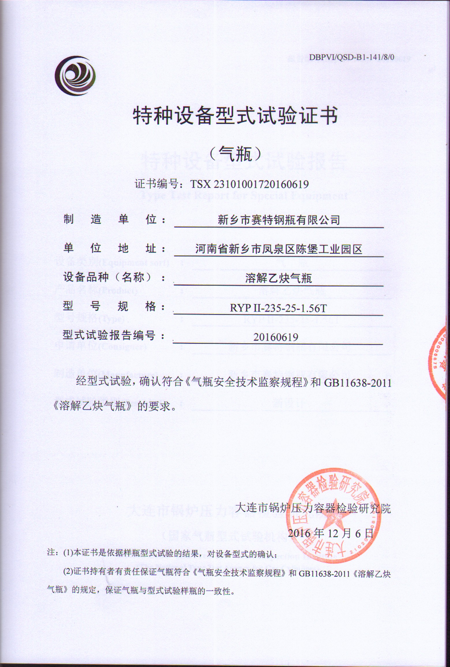 RYPII235-25-1.56T溶解乙炔氣瓶